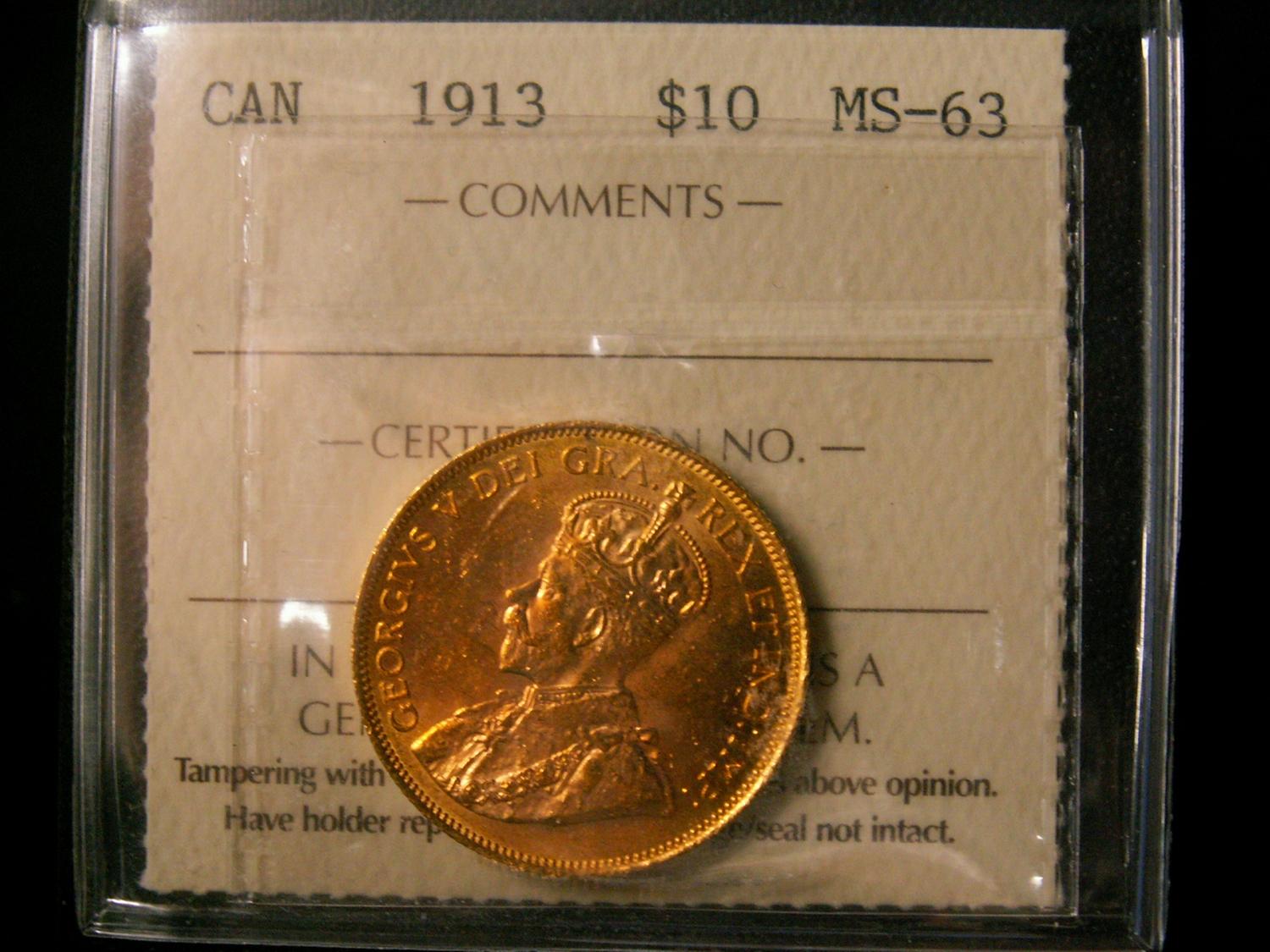 1913 $10 Gold ICCS MS63. Nice and choice.