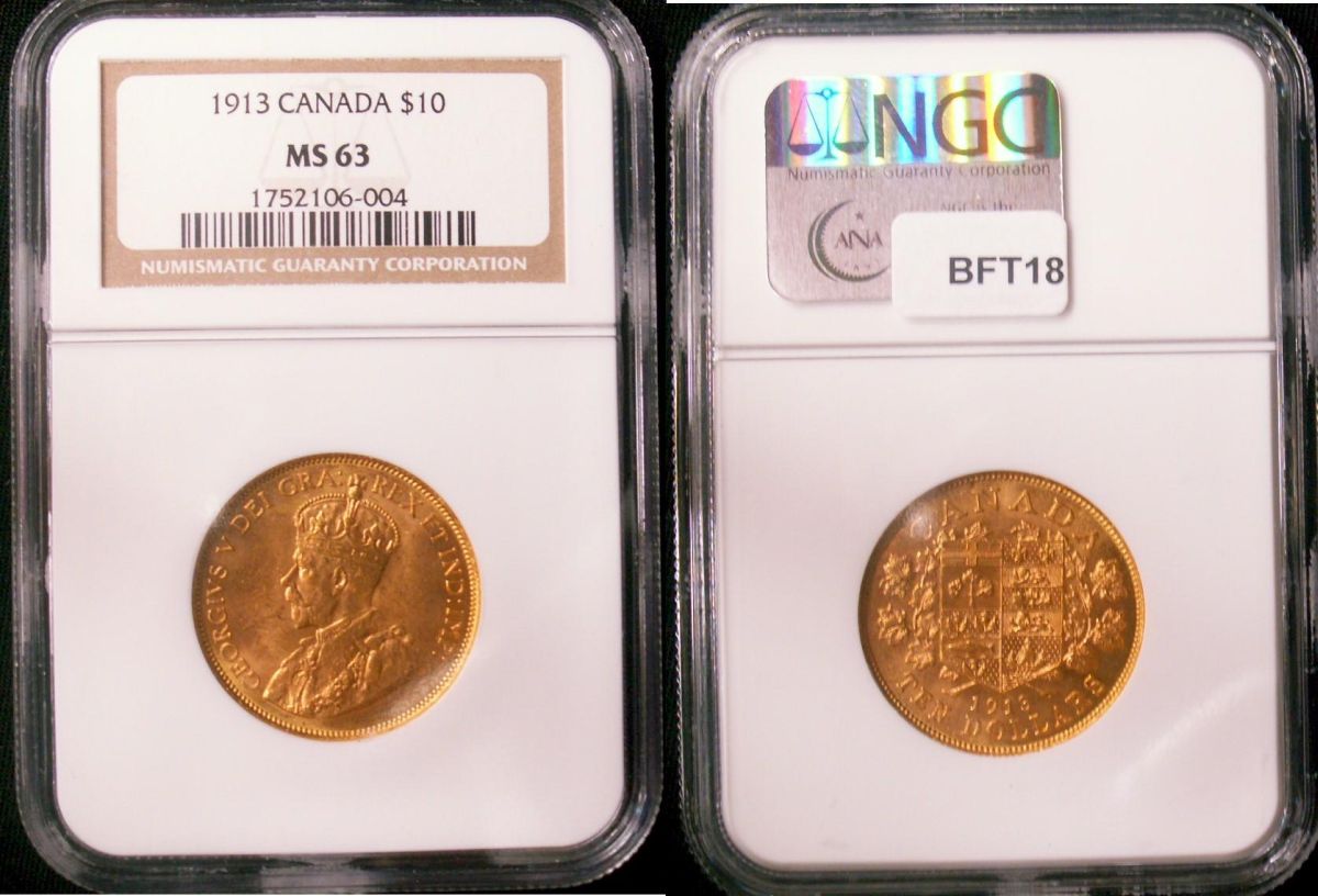 1913 $10 Gold NGC MS63. Lustrous issue.