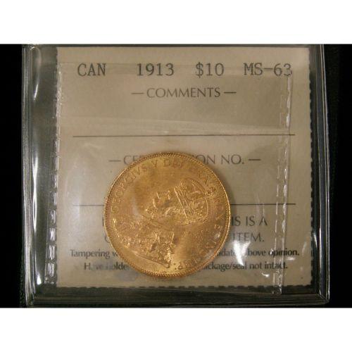 1913 $10 ICCS MS63. strongly struck and full of lustre.