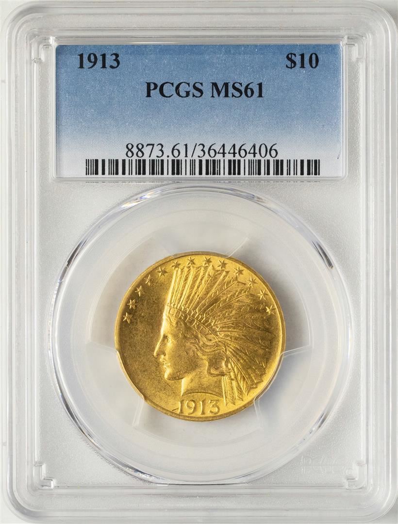 One 1913 $10 Indian Head Eagle Gold Coin PCGS MS61. PCGS Graded.