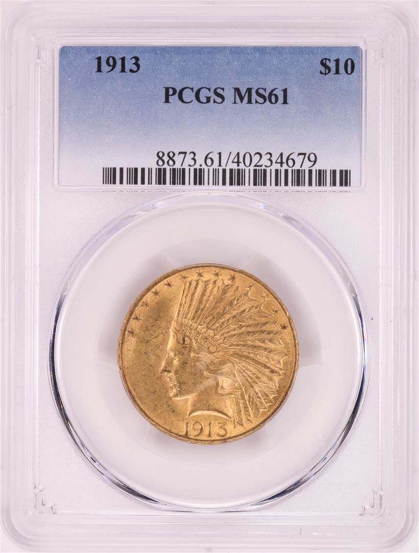 One 1913 $10 Indian Head Eagle Gold Coin PCGS MS61. PCGS Graded.