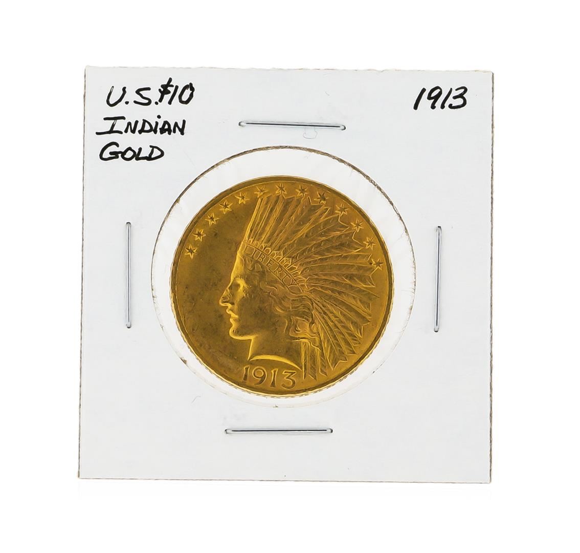 One 1913 $10 Indian Head Gold Coin.