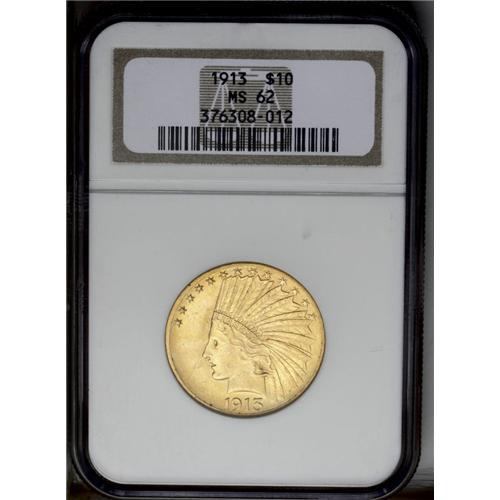 1913 $10 MS62 NGC. The vivid honey-gold surfaces have