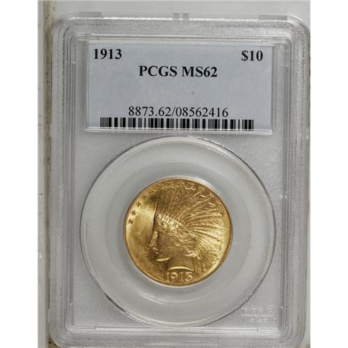 1913 $10 MS62 PCGS. A well struck coin with pleasing l