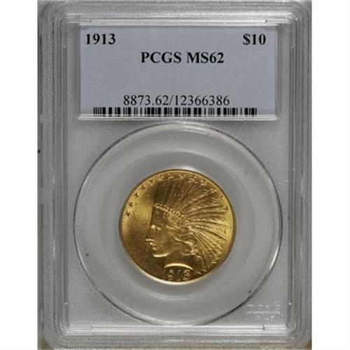 <B>1913 $10 MS62 PCGS.</B></I> PCGS Population (1050/779). NGC Census: (1022/790). Mintage: 442,071. Numismedia Wsl. Price for NGC/PCGS coin in MS62: $1,050. (#8873)<BR><BR><B>Coin Engraver:</B> Augustus Saint-Gaudens<BR><BR><b>Shipping:</b> Coins & Currency (<a target="_blank" href="http://www.heritageauctions.com/common/shipping.php">view shipping information</a>)