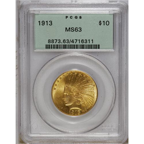 1913 $10 MS63 PCGS. Solidly struck devices and pleasin