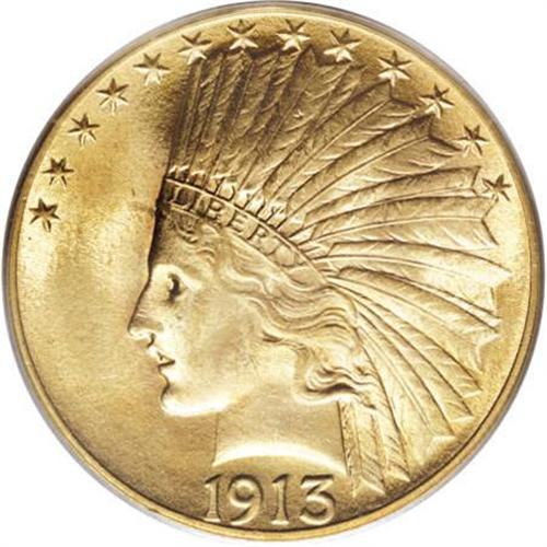 <B>1913 $10 MS64 PCGS.</B></I> Both sides of this lemon-gold near-Gem offer vibrant luster, and the crisply struck devices show only minimal marks. The fields are well preserved. The lower right reverse has a pair of unimportant spots. A small area of prooflike surface (as made) is noted above the eagle's wing.<BR><BR><B>Coin Engraver:</B> Augustus Saint-Gaudens<BR><BR><b>Shipping:</b> Coins & Currency (<a target="_blank" href="http://www.heritageauctions.com/common/shipping.php">view shipping information</a>)