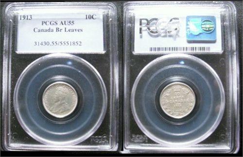 1913 10¢ PCGS AU55. RARE Broad Leaf in example in high grade. Very underrated coin.