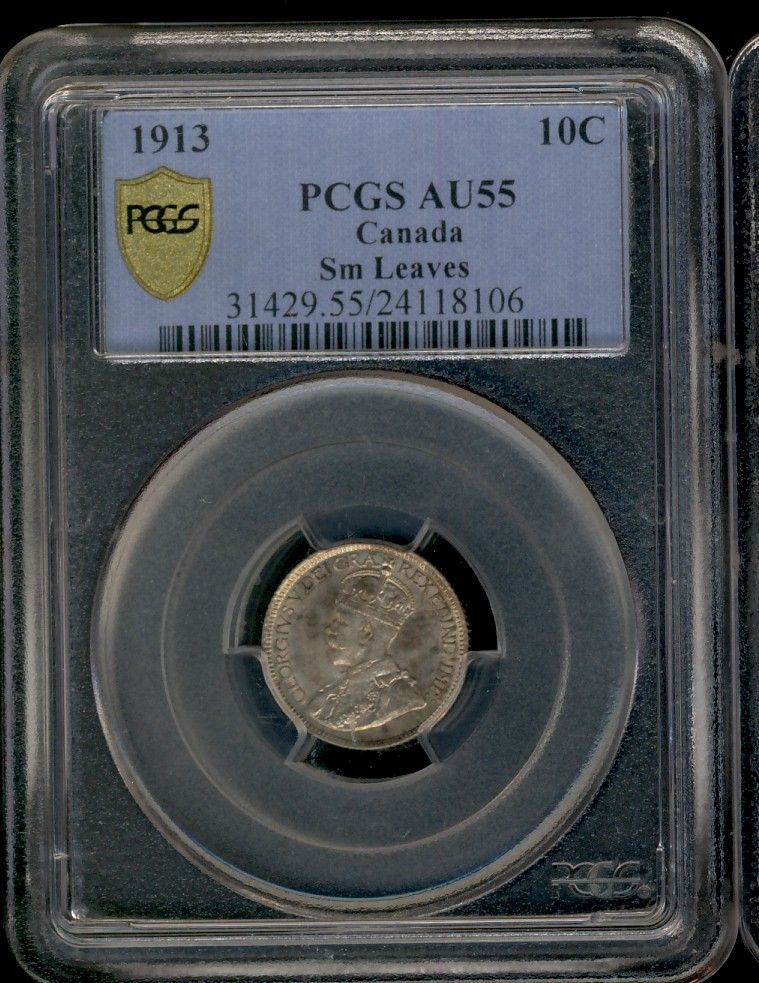 1913 10¢ SML PCGS AU55