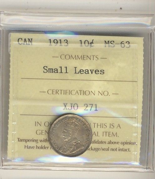 1913 10¢ Sml ICCS MS63.