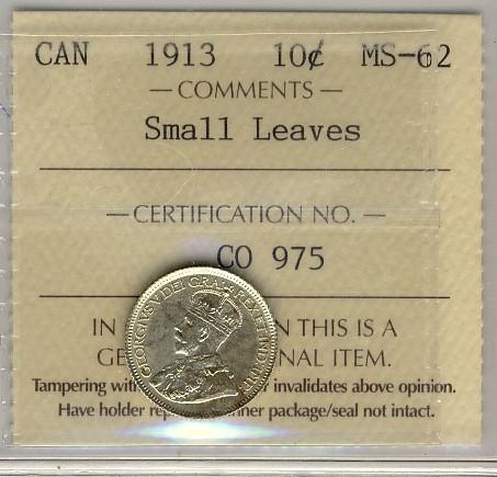 1913 10¢ Sml Lvs ICCS MS62.