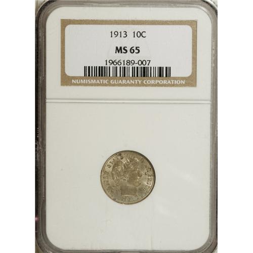 <B>1913 10C MS65 NGC.</B></I> NGC Census: (146/30). PCGS Population (73/25). Mintage: 19,760,622. Numismedia Wsl. Price for NGC/PCGS coin in MS65: $565. (#4863)<BR><BR><b>Shipping:</b> Coins & Currency (<a target="_blank" href="http://www.heritageauctions.com/common/shipping.php">view shipping information</a>)