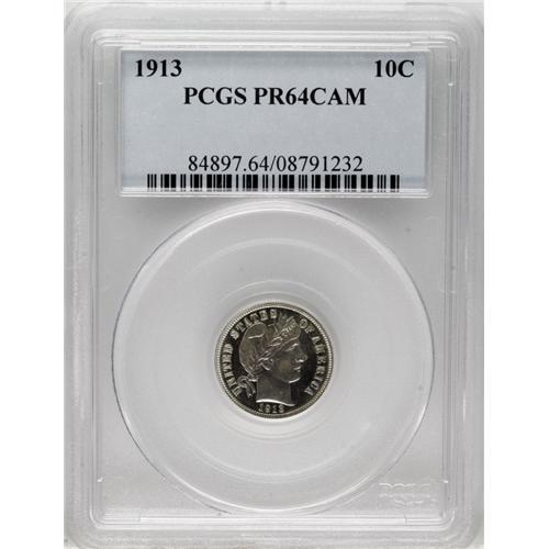 1913 10C PR64 Cameo PCGS. Pretty blue patina graces th
