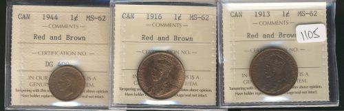 1913, 1916, 1944 all three coins are ICCS graded MS62 Red/Brown