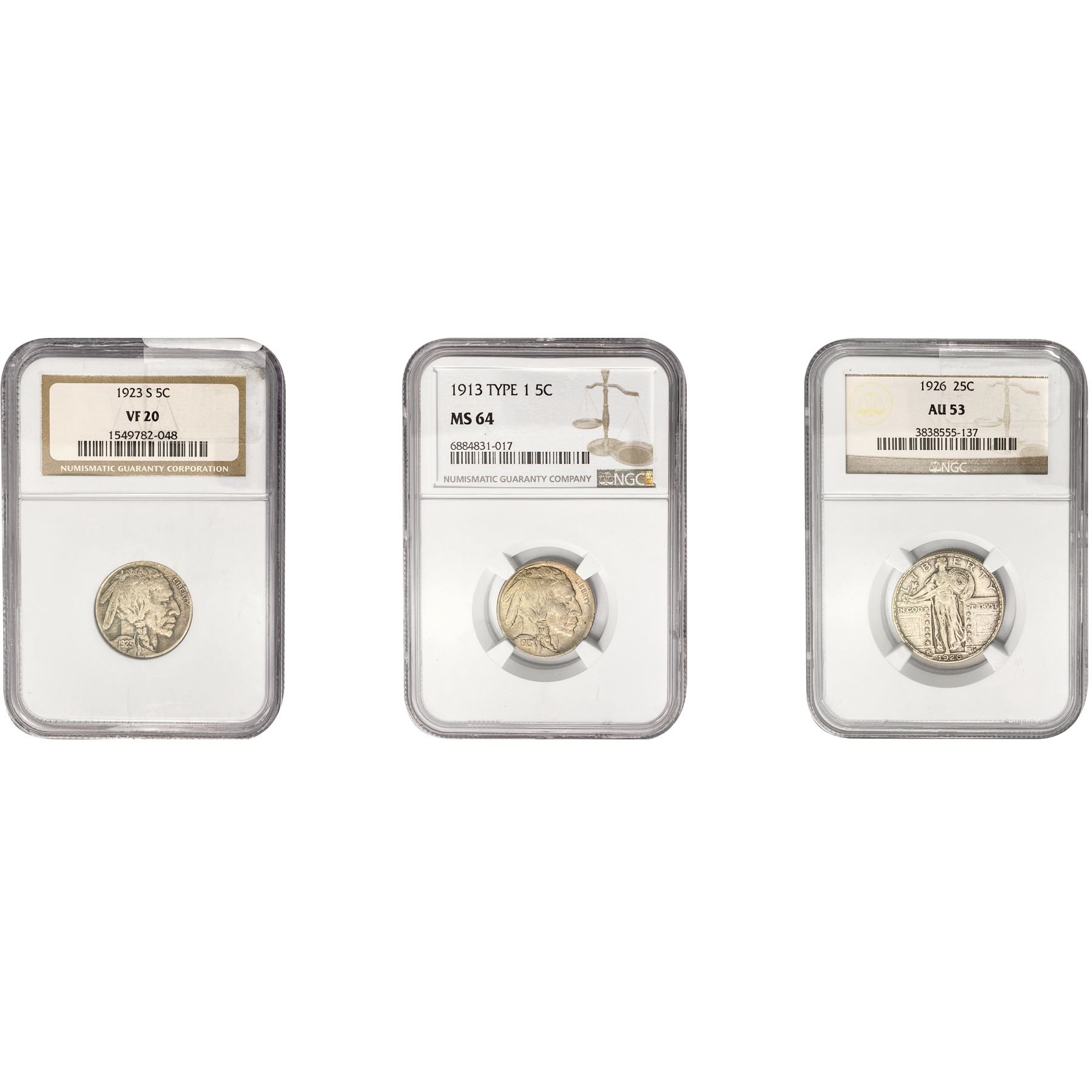1913-1926 [3] U.S. Type Coins NGC VF-MS20-64