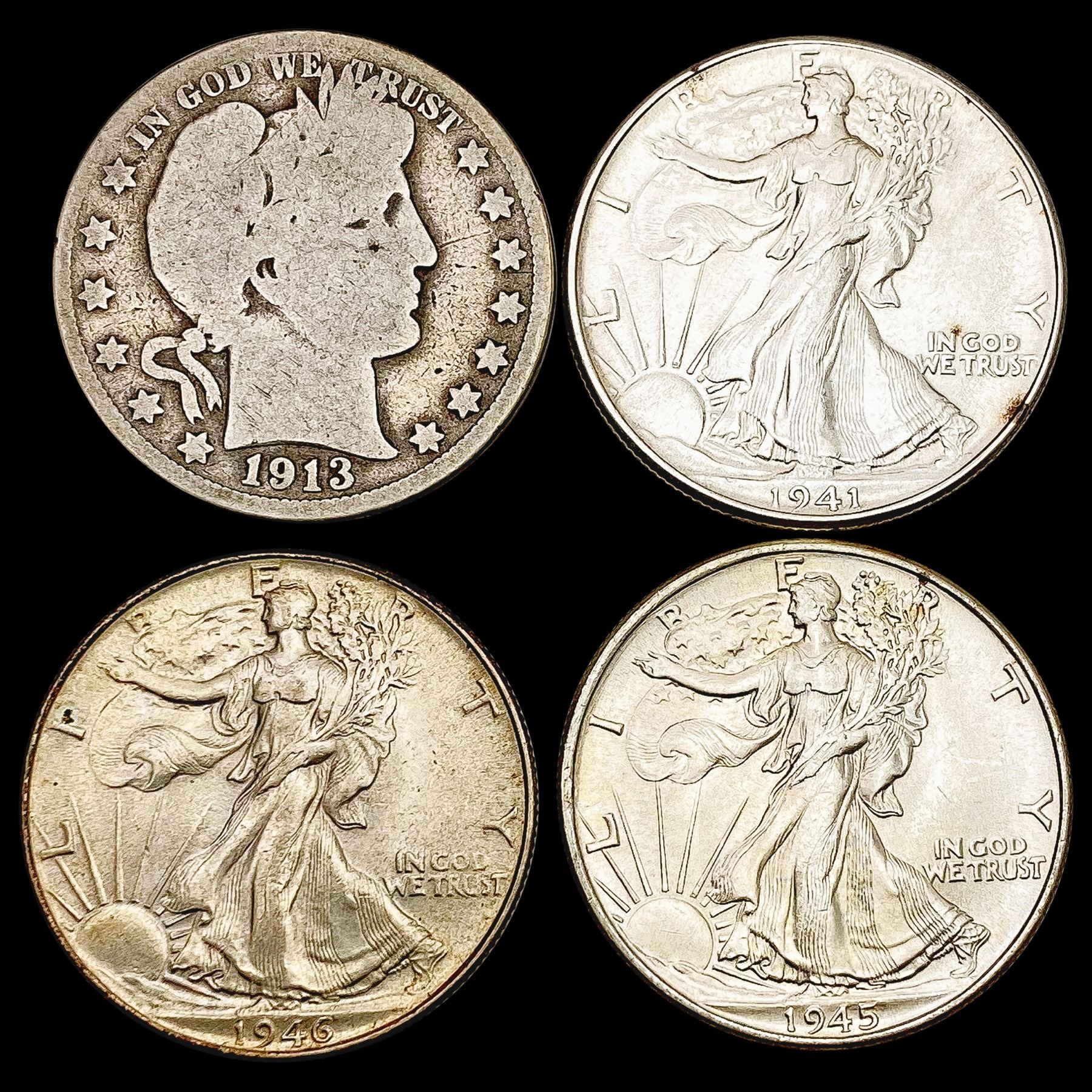 1913-1946 US Silver Half Dollar Lot [4 Coins] HIGH GRADE
