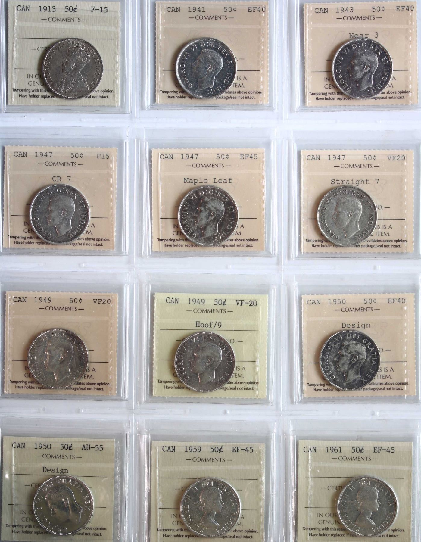 1913-1961 50¢ All ICCS Choice Fine-15 to Choice About Uncirculated-55. Includes 1947 "ML", 1949 "Hoof/9".