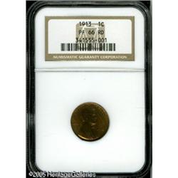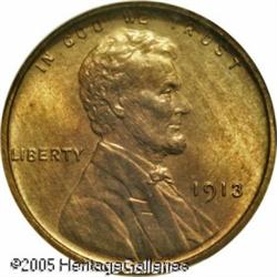 <B>1913 1C PR66 Red NGC.</B></I> Great copper-orange color flows over both sides. Well-struck with smooth, matte surfaces that shimmer with unimprovable luster. Very nearly mark-free with none of the mentionable spots that so often frequent these coins. Population: 9 in 66, 5 finer (1/05). Lot:5616