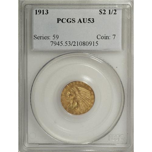 1913 $2 1/2 AU53 PCGS. PCGS Population (76/4160).