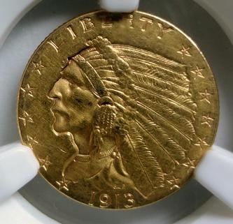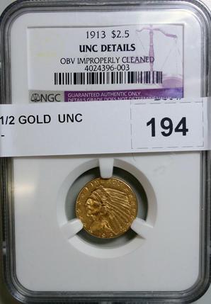 1913 $2 1/2 GOLD UNC cleaned