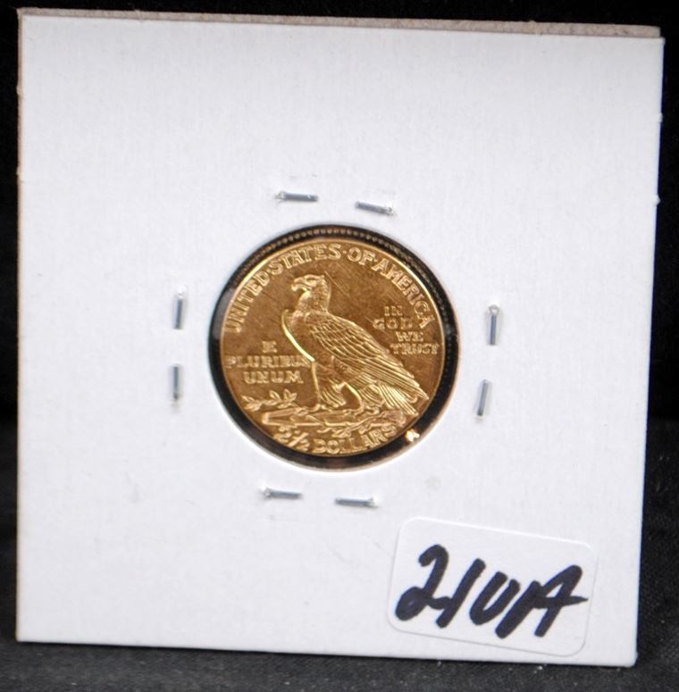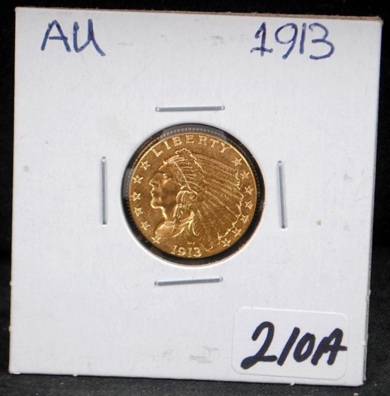 1913 $2 1/2 INDIAN GOLD COIN FROM SAFE DEPOSIT - SELLER GRADES AT AU (CURRENT COIN WORLD TRENDS LISTS AN AU50 @ $325.00 AND AN AU58 @ $350.00)