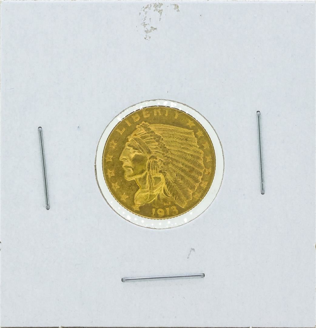 One 1913 $2 1-2 Indian Head Quarter Eagle Gold Coin BU