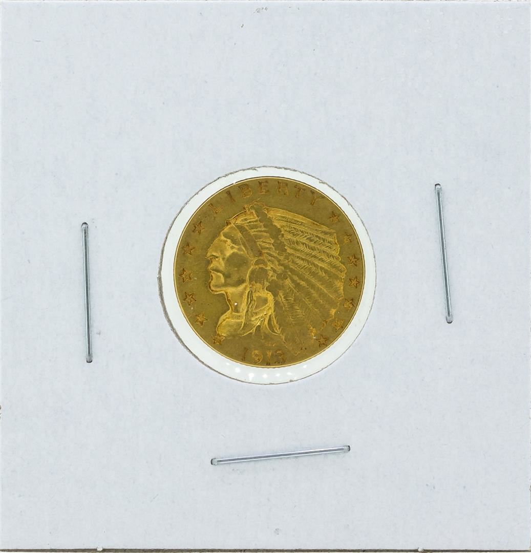 One 1913 $2 1-2 Indian Head Quarter Eagle Gold Coin XF