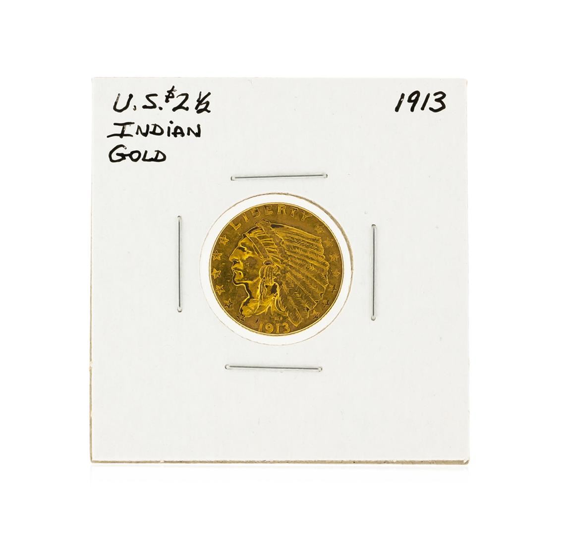 One 1913 $2 1/2 Indian Head Quarter Eagle Gold Coin.