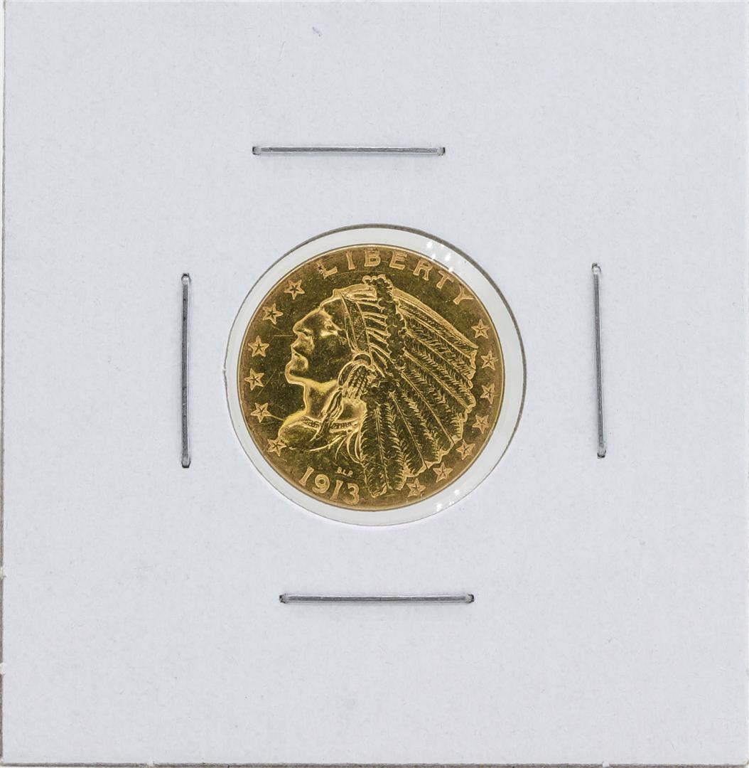 One 1913 $2 1/2 Indian Head Quarter Eagle Gold Coin.