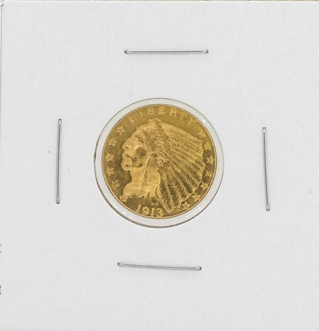 One 1913 $2 1/2 Indian Head Quarter Eagle Gold Coin.