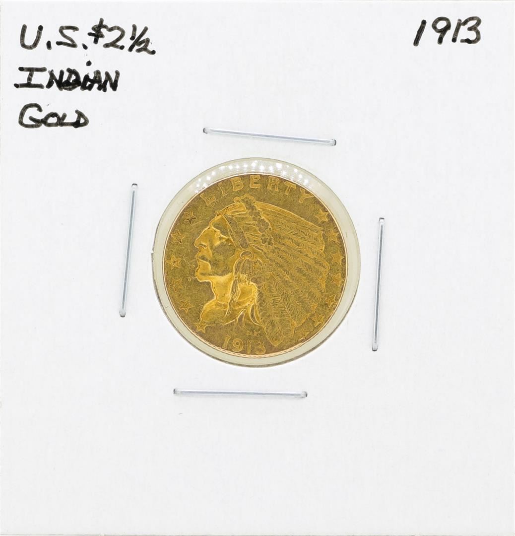 One 1913 $2 1/2 Indian Head Quarter Eagle Gold Coin.