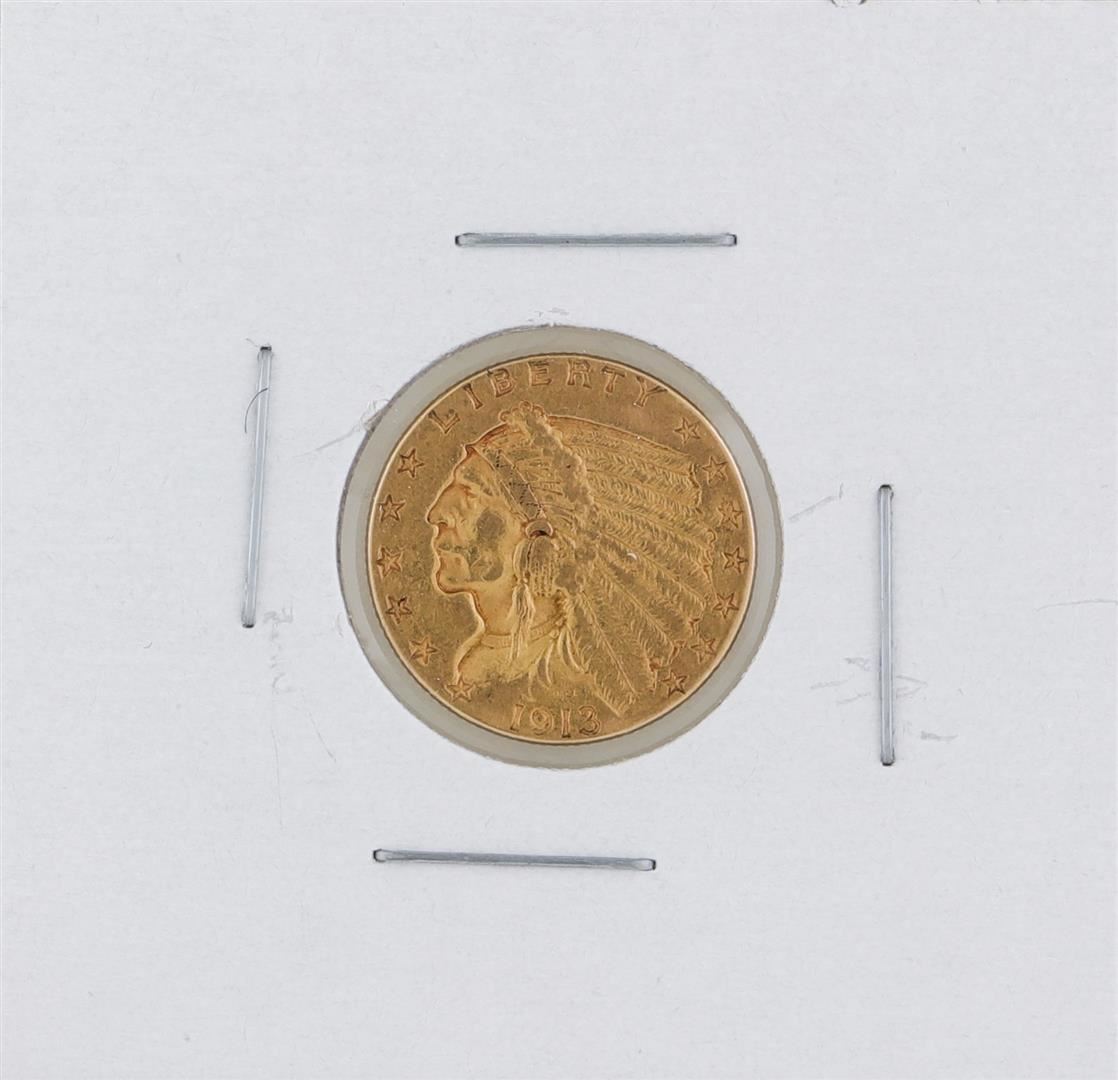 One 1913 $2 1/2 Indian Head Quarter Eagle Gold Coin.