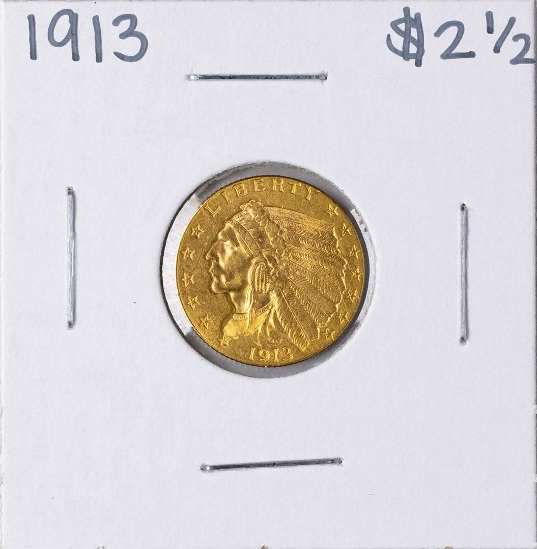 One 1913 $2 1/2 Indian Head Quarter Eagle Gold Coin.
