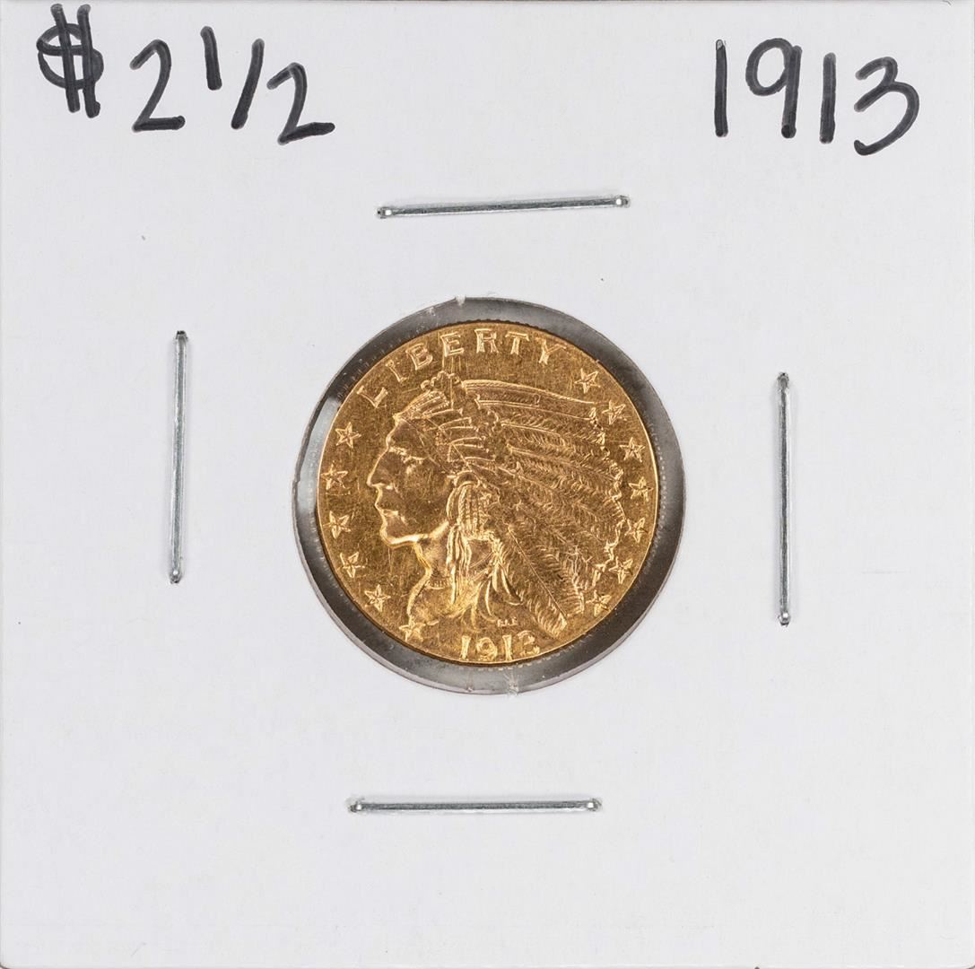 One 1913 $2 1/2 Indian Head Quarter Eagle Gold Coin.