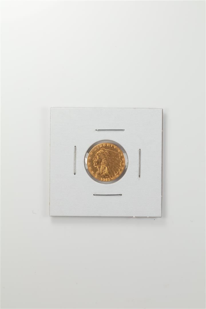 One 1913 $2 1/2 Indian Head Quarter Eagle Gold Coin.