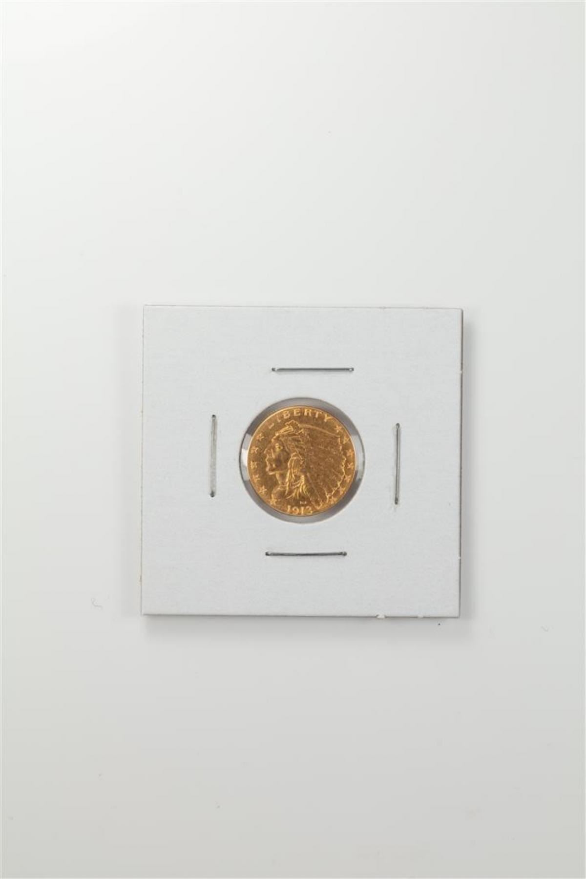 One 1913 $2 1/2 Indian Head Quarter Eagle Gold Coin.