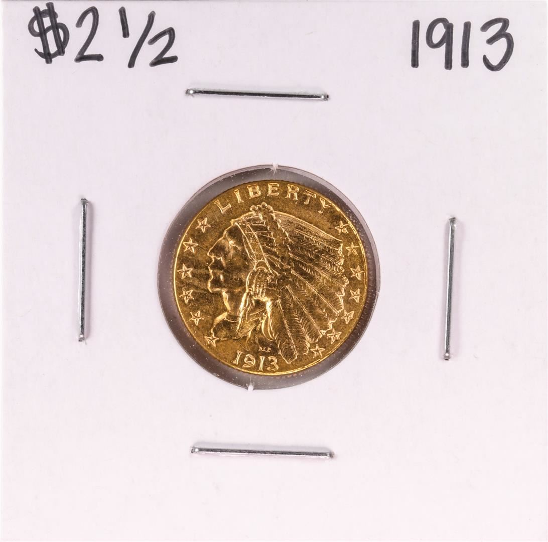One 1913 $2 1/2 Indian Head Quarter Eagle Gold Coin.