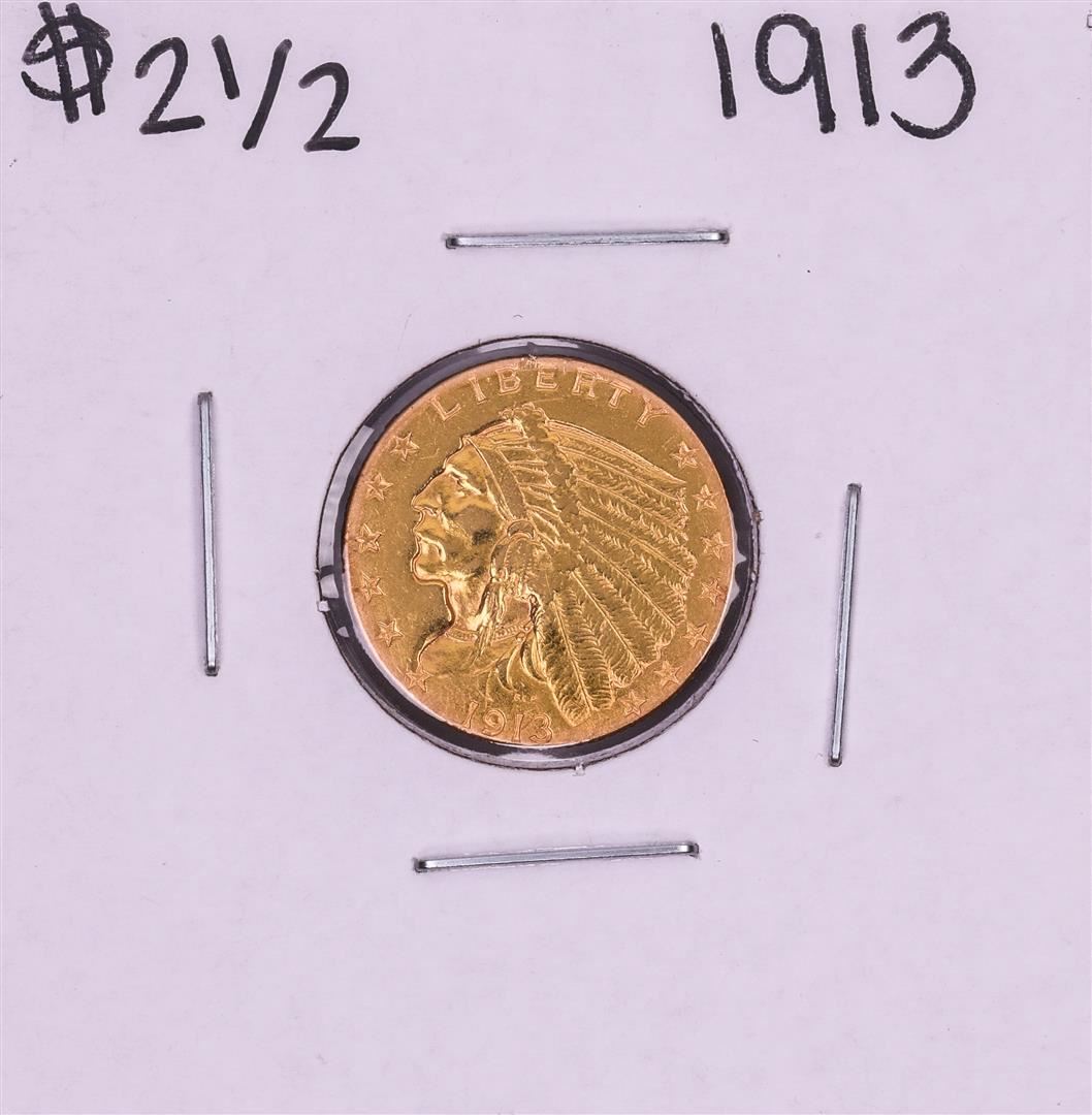 One 1913 $2 1/2 Indian Head Quarter Eagle Gold Coin.