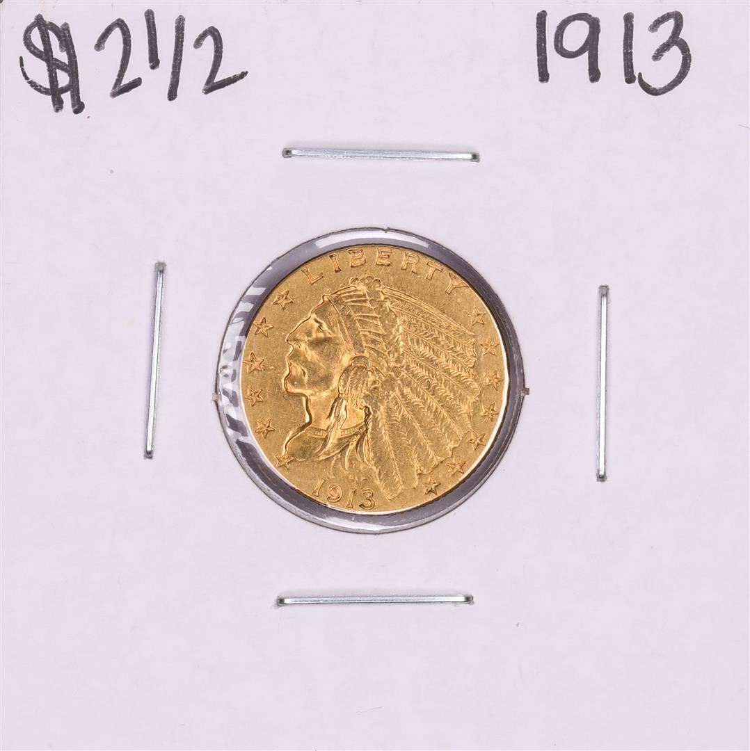 One 1913 $2 1/2 Indian Head Quarter Eagle Gold Coin.