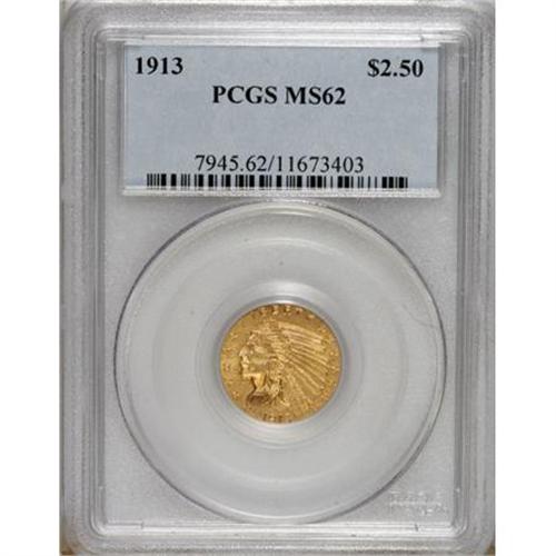 1913 $2 1/2 MS62 PCGS. PCGS Population (1142/1403)