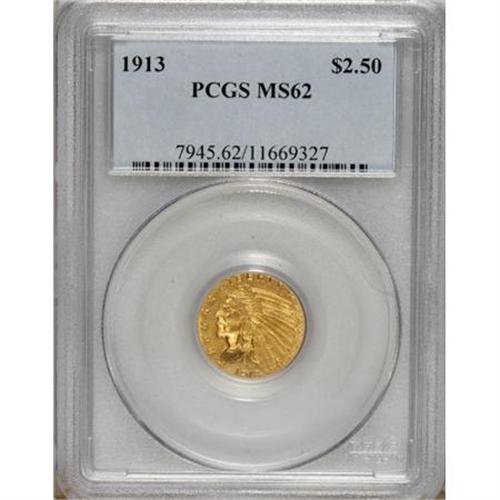 1913 $2 1/2 MS62 PCGS. PCGS Population (1142/1403)