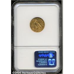 <B>1913<$2 1/2> MS63 NGC.</B></I> Orange-gold patina slightly subdues the luster on this Select Indian Quarter Eagle. It displays a good strike and normal contact marks for the stated grade. <BR><BR><B>Important notice:</B> Heritage usually auctions material at the rate of 200-250 lots per hour. On some occasions eBay Live bid software or the Internet may not be able to keep up with the pace of the auction. We recommend placing a realistic absentee bid now as insurance to avoid disappointment. Occasionally the auctioneer may eliminate or reject an eBay Live bid, and the auctioneer may also reopen a lot after the close of the eBay live bidding (usually because we missed an audience bid), and may reject your bid even if it shows you as the winning bidder. By bidding via eBay Live, you agree that Heritage may award the lot to another bidder at its sole discretion under the circumstances described above or any other reasonable circumstances. Since eBay bids are not shown to us until we open the lot on the floor, we treat those bids just like floor bids. In most cases the floor responds before the eBay bid is presented to us, due to Internet lag time, so for consistency we have made it a policy that floor bids are always considered first over tie eBay live bids. Also please note that all Heritage lots purchased through eBay Live carry a 20% Buyer's Premium. Please make sure you read the Terms and Conditions before you bid. </span></font></tr></table></td></tr></table>
