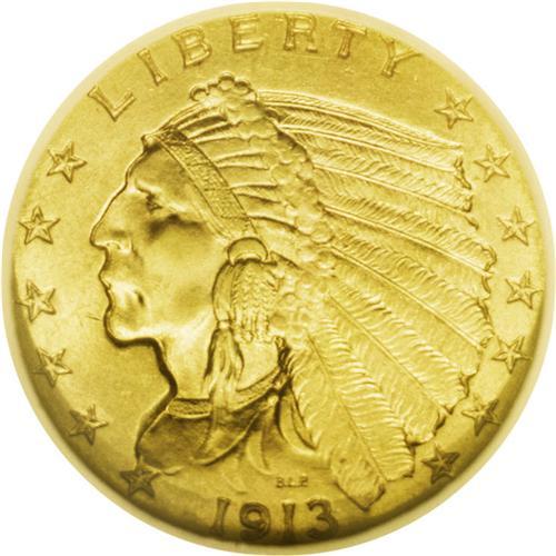 <B>1913<$2 1/2> MS65 NGC.</B></I> Although it is considered a common date, as are all Indian quarter eagles except 1911-D and 1914, this issue is seldom encountered in Gem condition and rarely any finer. The 1913 Indian quarter eagle had the highest mintage of any issue in the series with production continuing until 722,165 coins were struck. Like nearly every other Gem quality piece known, this example is sharply struck with brilliant pinkish-gold color and frosty luster. The surfaces of this piece have a slightly grainy texture as do nearly all known pieces. Census: 47 in 65, 1 finer (9/06).