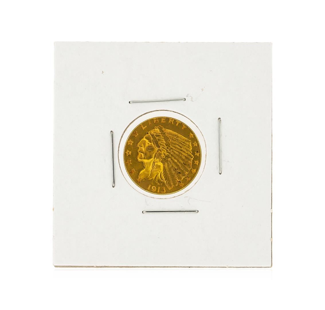 One 1913 $2.50 CU Indian Head Quarter Eagle Gold Coin.