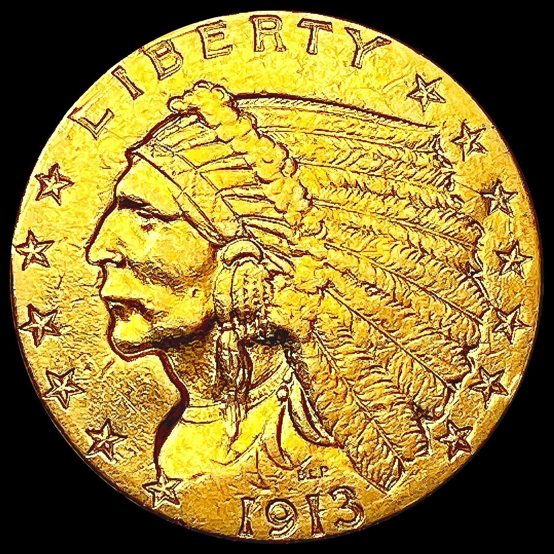 1913 $2.50 Gold Quarter Eagle CLOSELY UNCIRCULATED