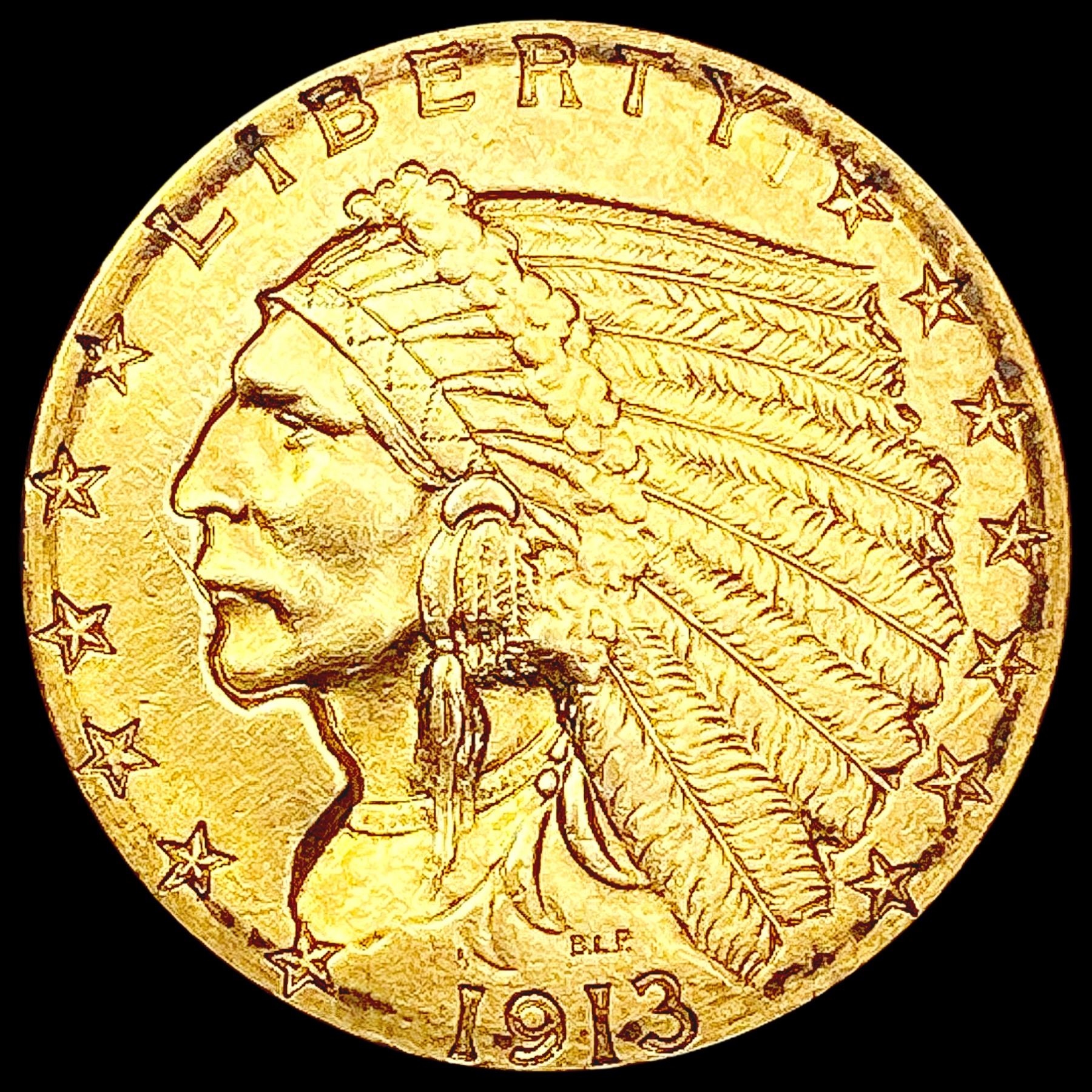 1913 $2.50 Gold Quarter Eagle CLOSELY UNCIRCULATED