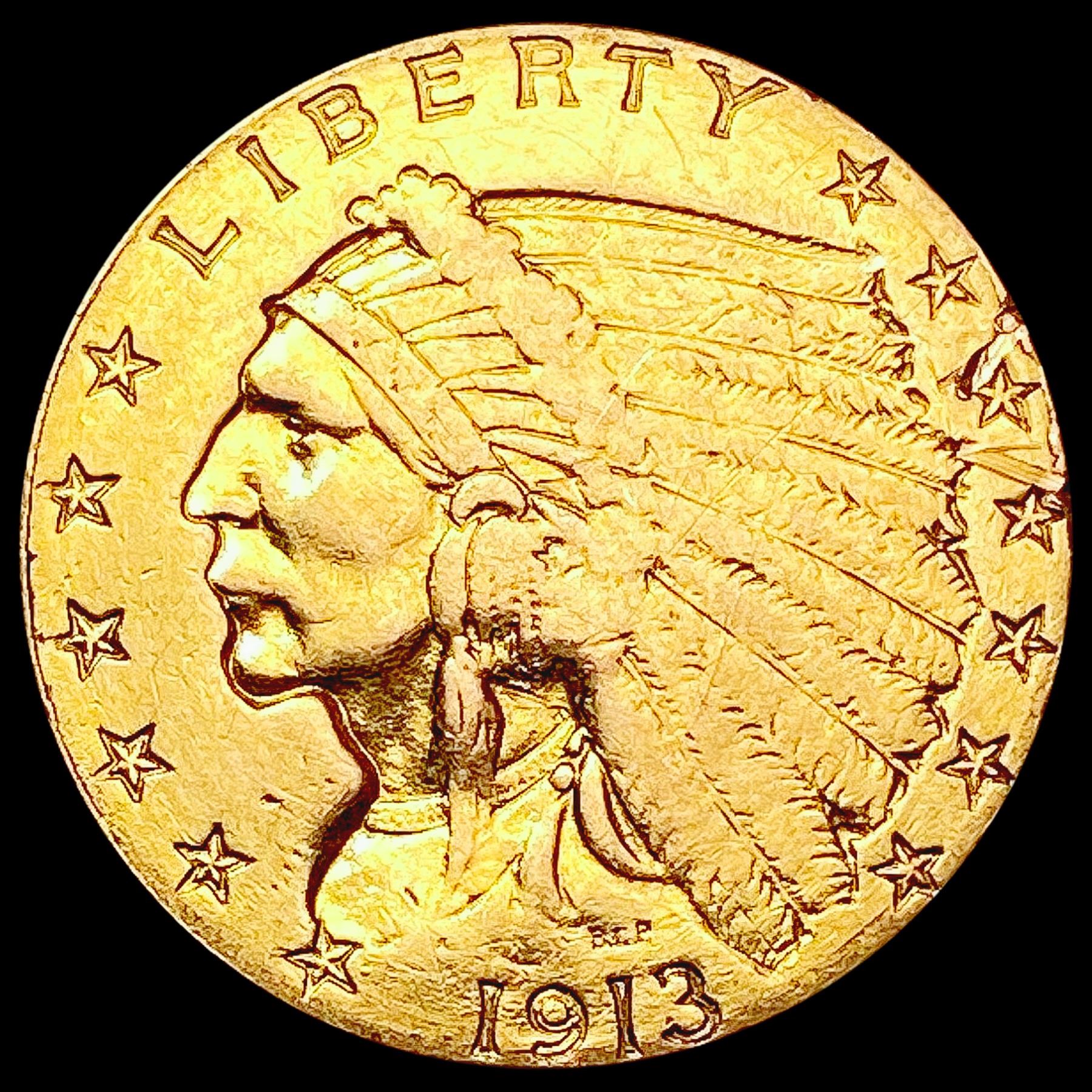 1913 $2.50 Gold Quarter Eagle CLOSELY UNCIRCULATED