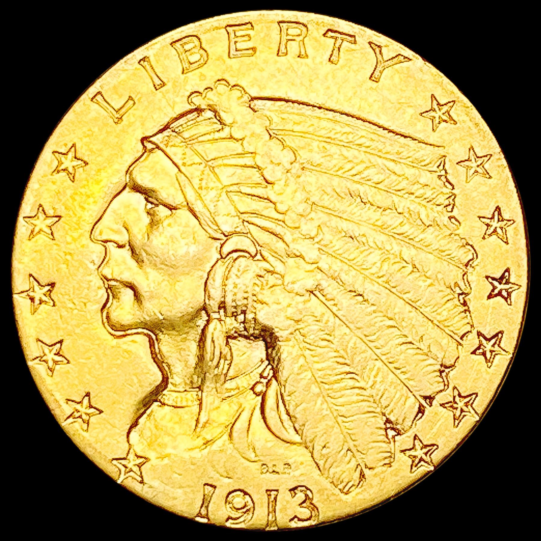 1913 $2.50 Gold Quarter Eagle CLOSELY UNCIRCULATED