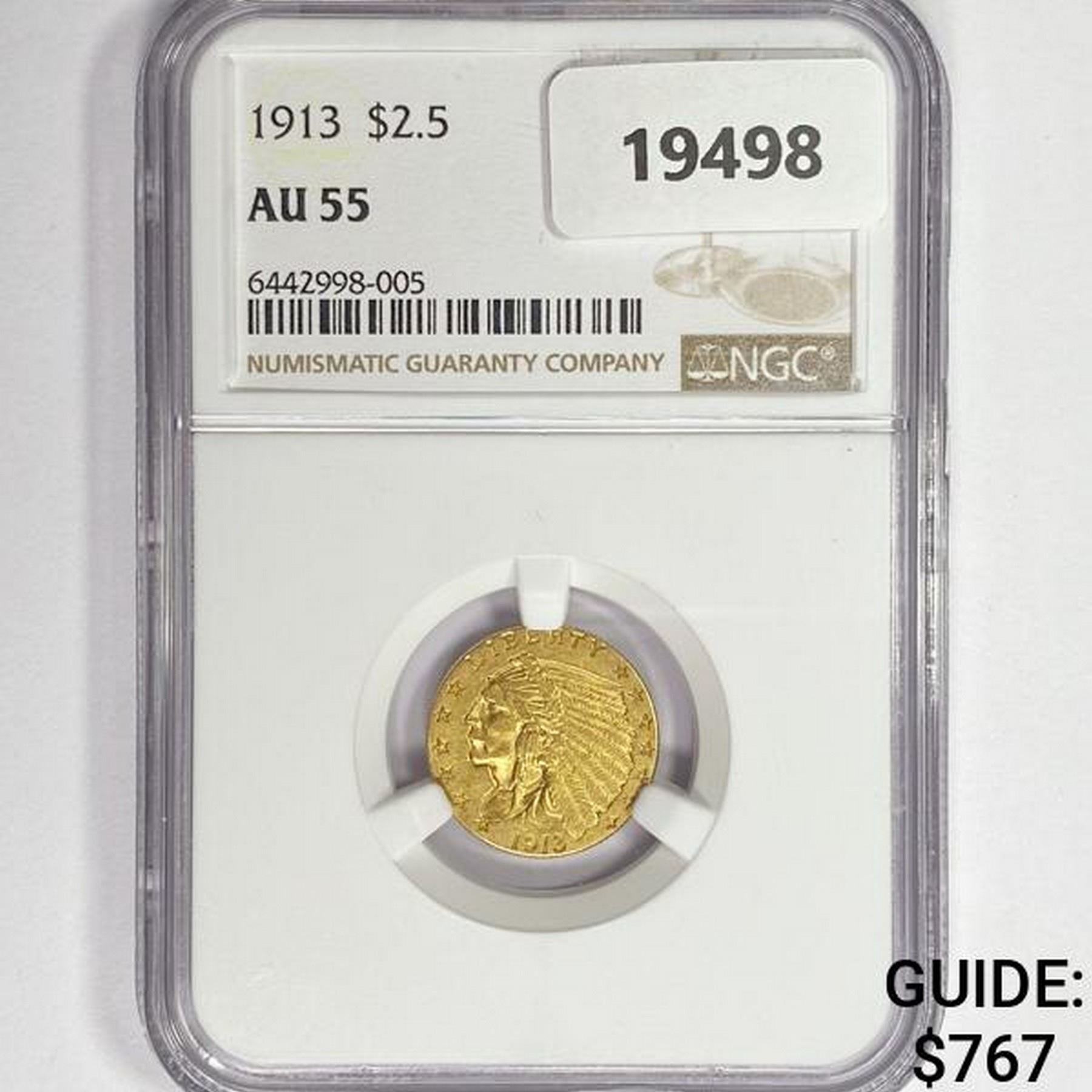 1913 $2.50 Gold Quarter Eagle NGC AU55