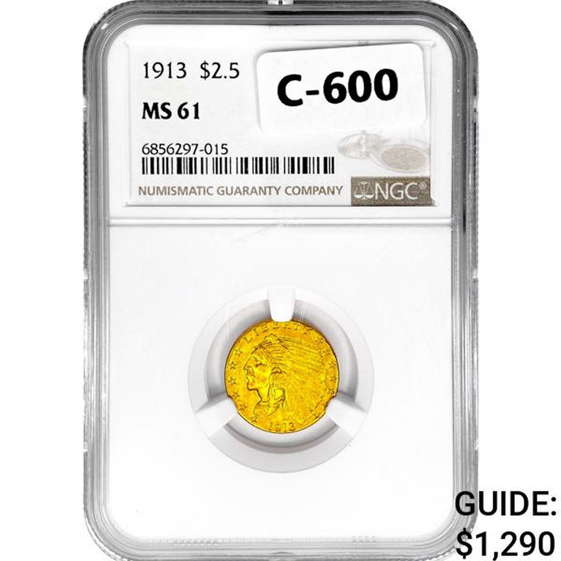 1913 $2.50 Gold Quarter Eagle NGC MS61